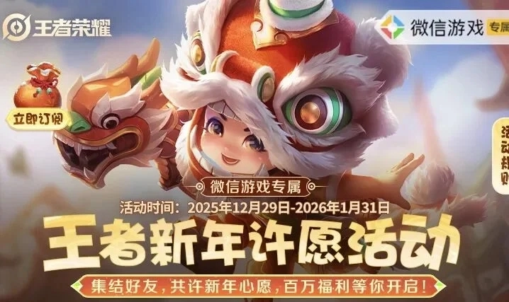 王者微区新年福利活动上线,专属微区玩家的惊喜好礼等你来拿!活动时间从2025年12月30日持续至2026年1月31日,有机会免费领取永久皮肤、实物周边等丰厚奖励~入口就在下方,快来看看吧!