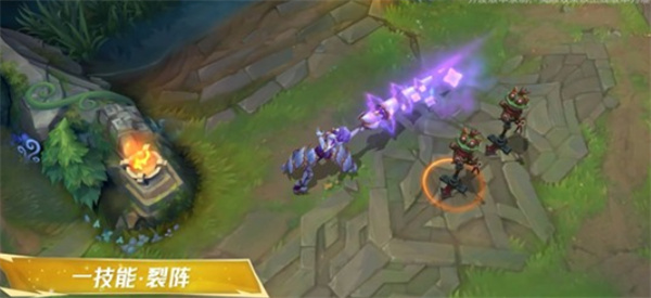 1技能1 - 裂阵:朝着前方发起冲锋,对行径路线上的敌人予以伤害打击,并使其陷入击飞状态。