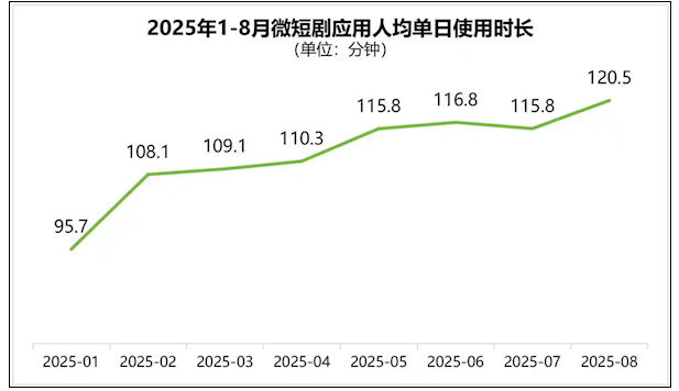 同一时期,微短剧应用的人均单日使用时长为120.5分钟,相比1月增长幅度达到25.9% 。