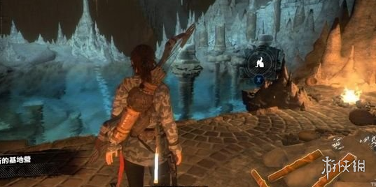 爬上河岸后,顺着水洞往另一侧潜游,便能寻得新营地——地热洞穴。此地周边有不少火焰箭,记得收集留存,以备不时之需。