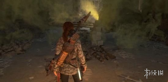 沿着石阶下行,游过水潭后,会抵达一处正泄露绿色毒气的区域。此时,朝着绿色气体射出火焰箭,爆炸产生的冲击力会暂时驱散毒气,你便可趁此机会迅速通行。