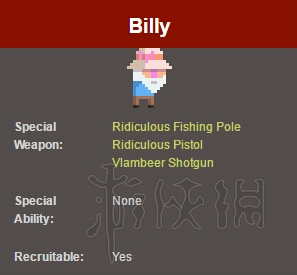 2. 稀有人物kelseg,玩家通过在路上随机遭遇的方式招募他。此人物自带拖把武器,整体战斗力处于一般水平。在游戏中,该人物体力等级极低,不过使用拖把时耐心消耗不大,玩家捡到拖把后,其耐久会增加一点。