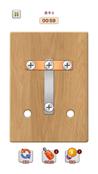 2、再将另外两个螺丝移到一边就可以过关了。
