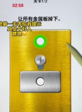 1、玩了个锤子第一关的通关要求是让所有金属板掉下。