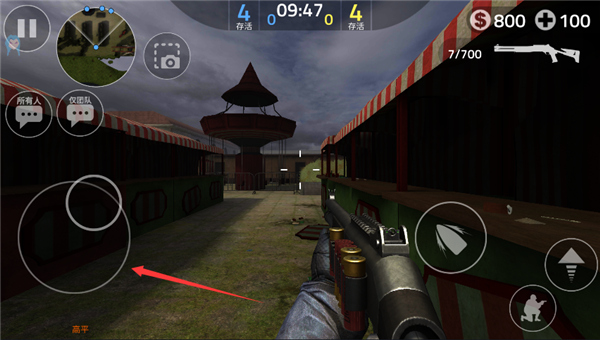 3、移动左下角的轮盘可以控制人物的移动方向;