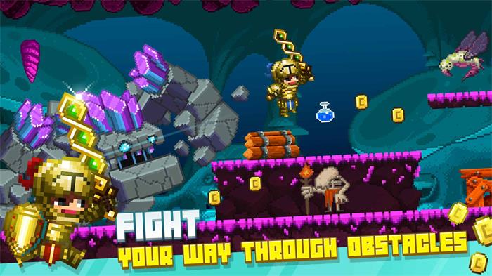 比特跑酷像素闪电这款游戏融入了经典跑酷元素,玩家能够操控英雄角色在各异场景中向前飞奔,尽可能多地收集游戏金币,从而成功购置等级更高的装备。