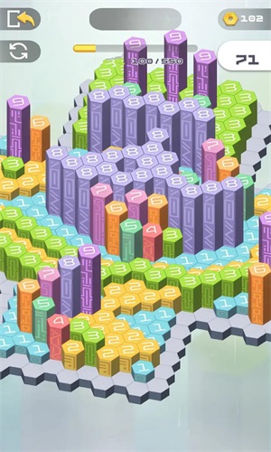 4、这款游戏对大家能力的考验着实不一般,我们必须得想尽办法把所有这些圆柱体都消除干净。