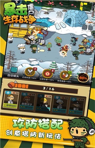 《暴击僵尸生存:战争》是一款精彩绝伦的动作闯关游戏,玩家能与僵尸展开大战。此刻,整座城市已被大量僵尸重重包围,你必须在此地与僵尸展开一场惊心动魄的大战,拯救更多幸存者,并建立属于自己的生存基地。不仅如此,还能搭建各式各样的塔防设施用于战斗,游戏体验超级精彩。快来加入这场僵尸大战吧!