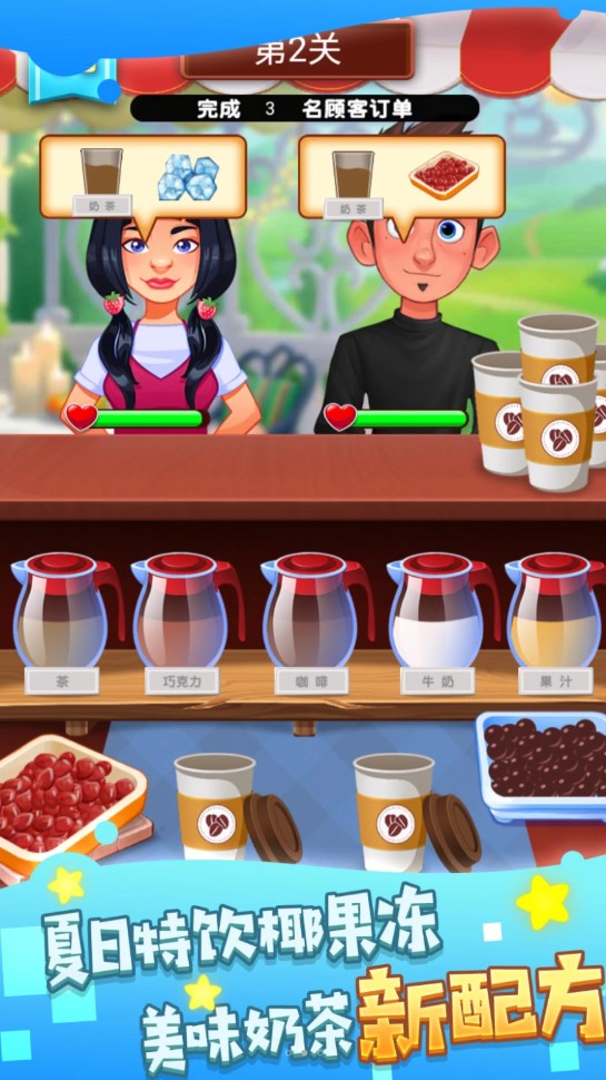 2. 能够学习运用多种不同道具,快速制作出奶茶。