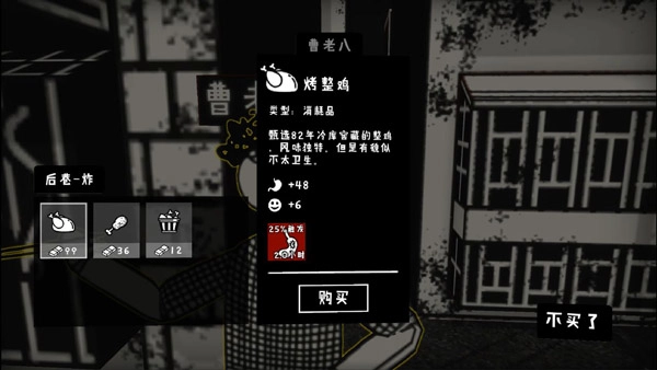 3、忙碌一天后,你得用一顿“丰盛”的晚餐来犒劳自己的五脏庙。要是角色生命值太低,不仅没法继续打工,还可能会生病。万一真生病了,那可就是一笔不小的开销了。
