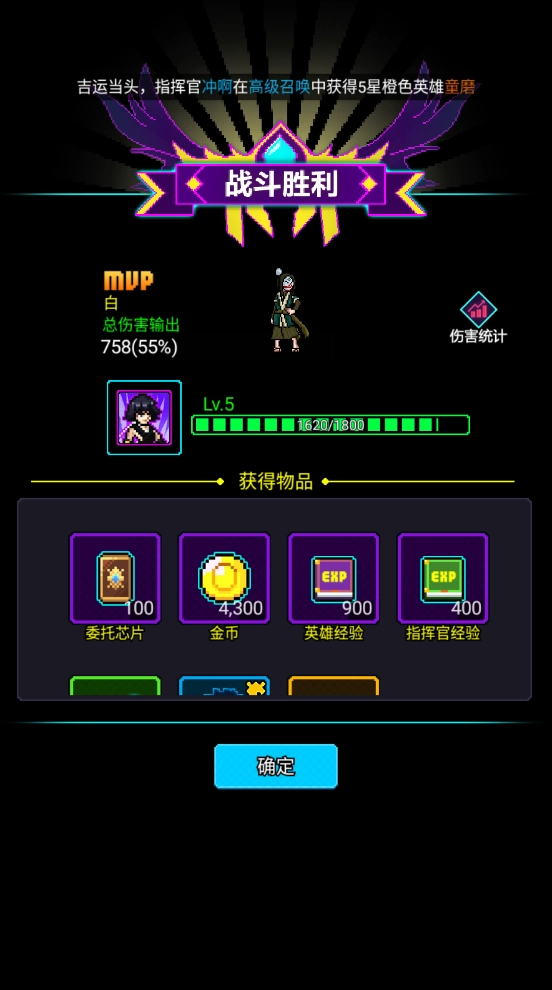 5、进入战斗整个过程全自动,击败敌人后获得奖励。