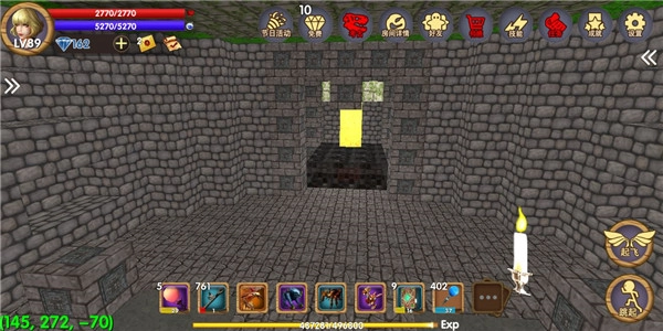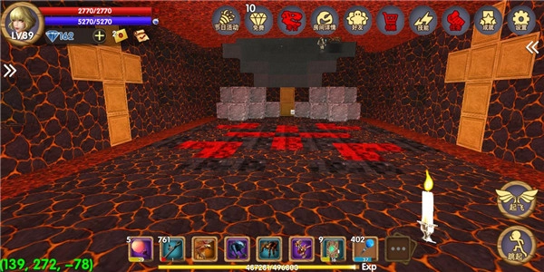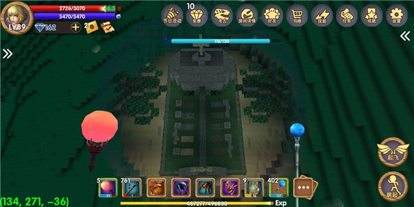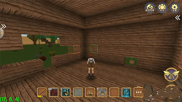 玩家进入游戏的时候可以先创建一个创造模式的世界,进入新建造的世界之后大家可以看到一个小房子,那是游戏中的固定出生点。玩过一段时间的玩家都知道游戏中有一个天空城,大多数人只有到后期等级较高才有能力去往天空城打怪。创造模式中玩家不需要考虑自己的等级直接点击起飞就行,大家可以运用这个模式了解到天空城。