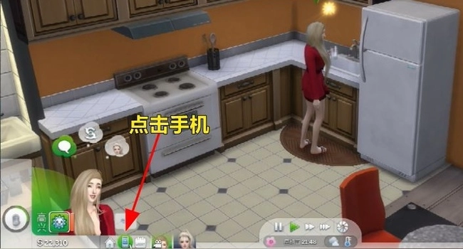 1、挑选想要找工作的模拟市民,对其进行操作,点击“手机”图标。