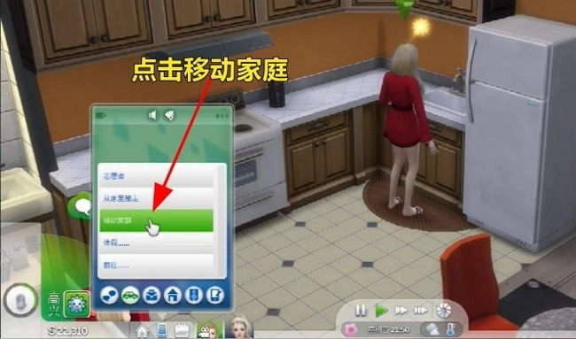 1、玩家进入游戏后,先在界面上点击手机图标,接着点击“移动家庭”选项。