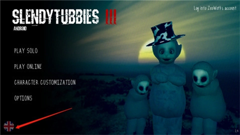 1、进入游戏首页后,能看到界面显示的是英文,此时点击左下角的国旗图标即可。