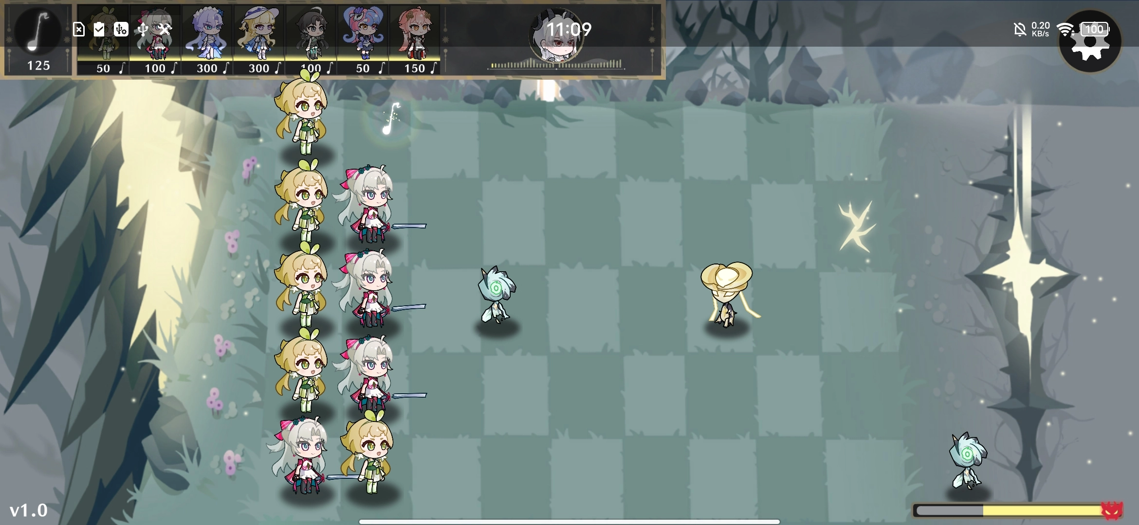 5、接着从左上方的角色按钮里,挑选并拖动角色,把它放到合适的位置,抵御怪物的进攻,守护自己的家园。