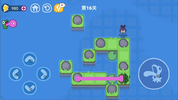 3、会设置一个小型平台供功夫蛙放置身体,这会使得闯关过程更具挑战性,玩家也将体验到全新的玩法。