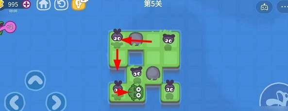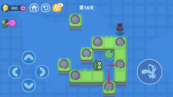 当青蛙靠近蚊子所在的格子时,蚊子就会飞到空中,这也是本关的一大难点。