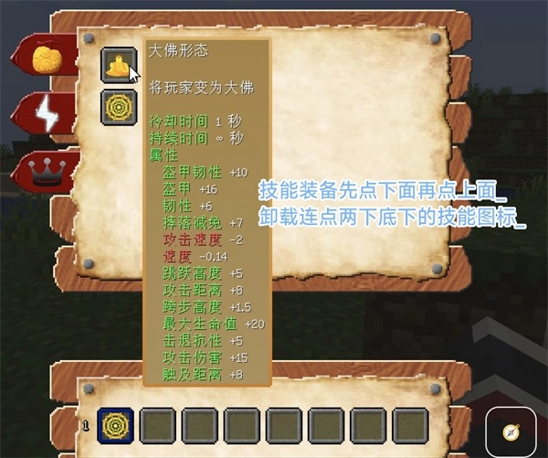 · 卸载技能的操作方式为:连续点击两次面板下方技能栏内的对应技能图标。