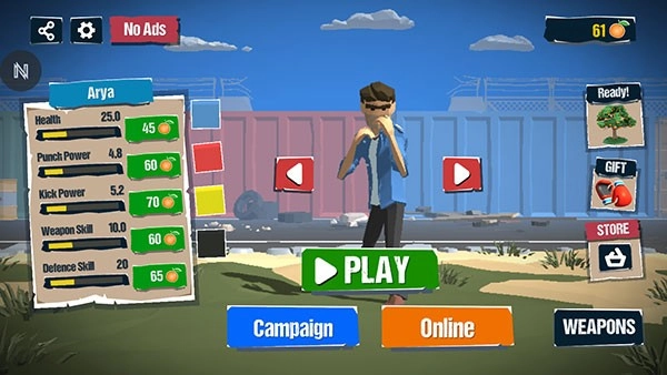 2、提升角色的生命值、冲击力、踢力与武器技术,以此来战胜更强大的敌人。