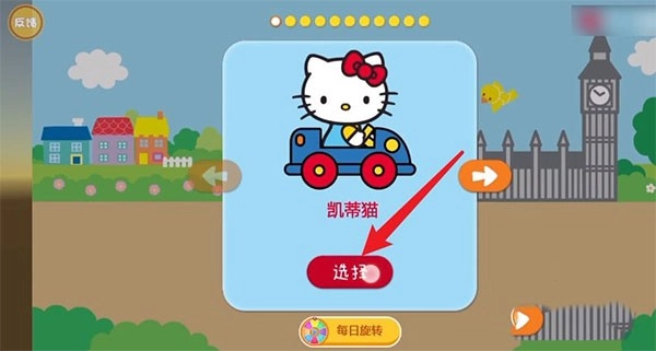 1、启动凯蒂猫飞行冒险的最新版本游戏,按照界面图示的指引,点击并选择【凯蒂猫】这一角色;