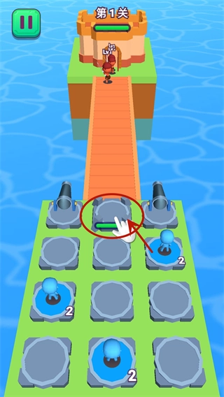 4、拖动小人到达中间通道位置,小人将带着自己的武器出发。