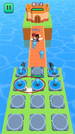 6、将两个相同等级的小人拖动到一起可以进行合并升级,提升战斗力。