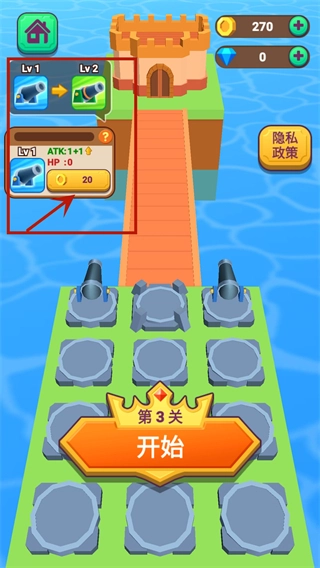 7、成功闯过关卡后会获得金币奖励,这些金币可用于提升炮台的攻击力。