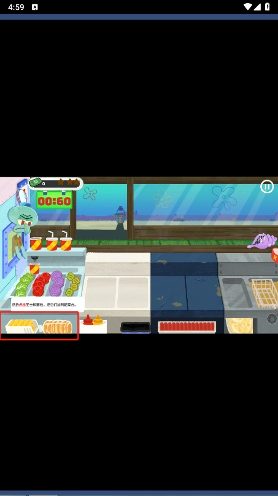 然后点击芝士和面包,把它们加入到配菜台。