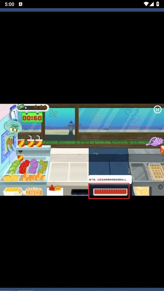 接下来点击生肉,把肉饼放在烤肉台上。