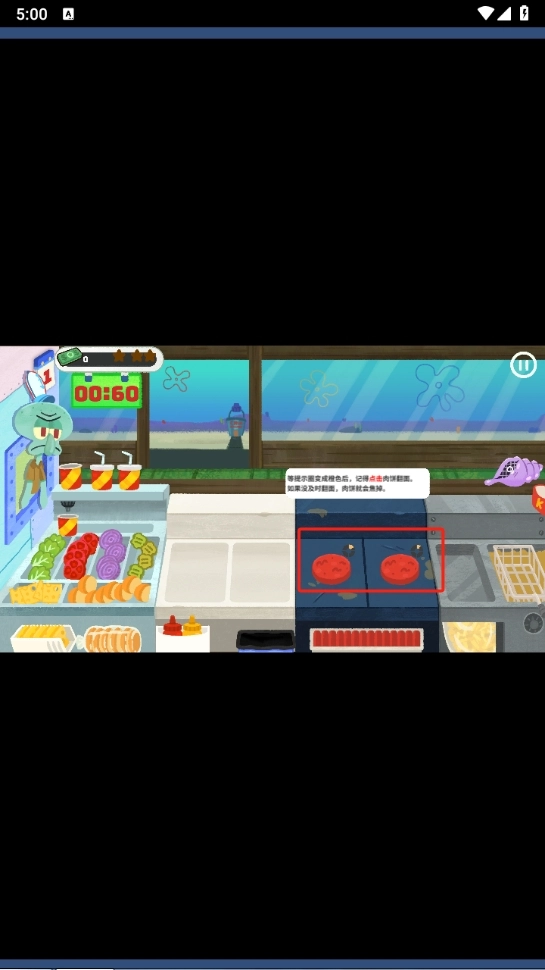 打开第一个阶段的关卡,并开始新手教学(有两种模式,以下以海绵宝宝为例)。