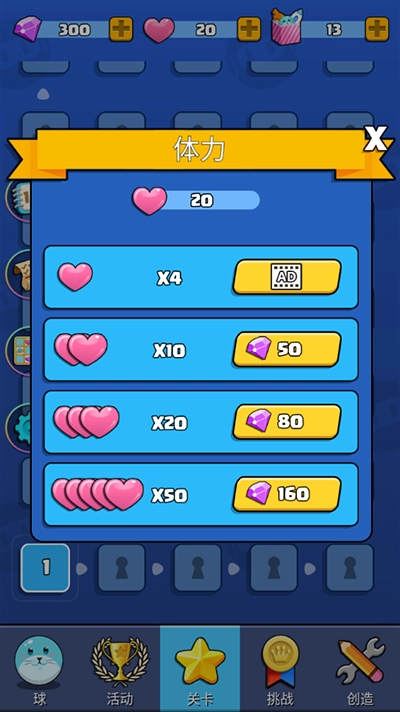 进入游戏关卡需要消耗体力,体力可通过钻石兑换,具体如图所示。