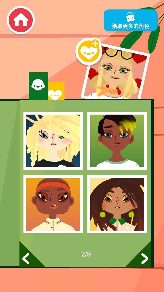 挑选一个背景,在你的角色变换不同姿势时拍下好看的照片!还能把角色照片存到相册里,之后回来再给它设计更多造型。