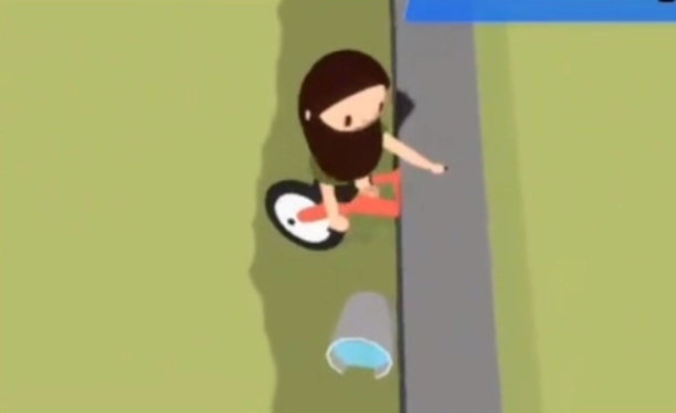 1、我们需要将橙色的自行车和小水桶都尽量卡在墙边。