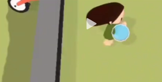 3、接下来我们从右边,卡bug硬把小水桶拿到手中。