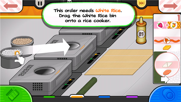 2、在制作寿司的过程中,玩家需要将食材放置在适当的位置,以保证制作的寿司的美观和味道。