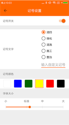 1、进入界面,设置记号开关、记号文字、记号颜色。