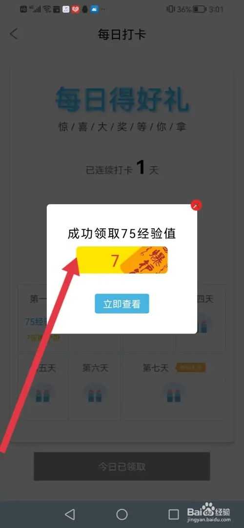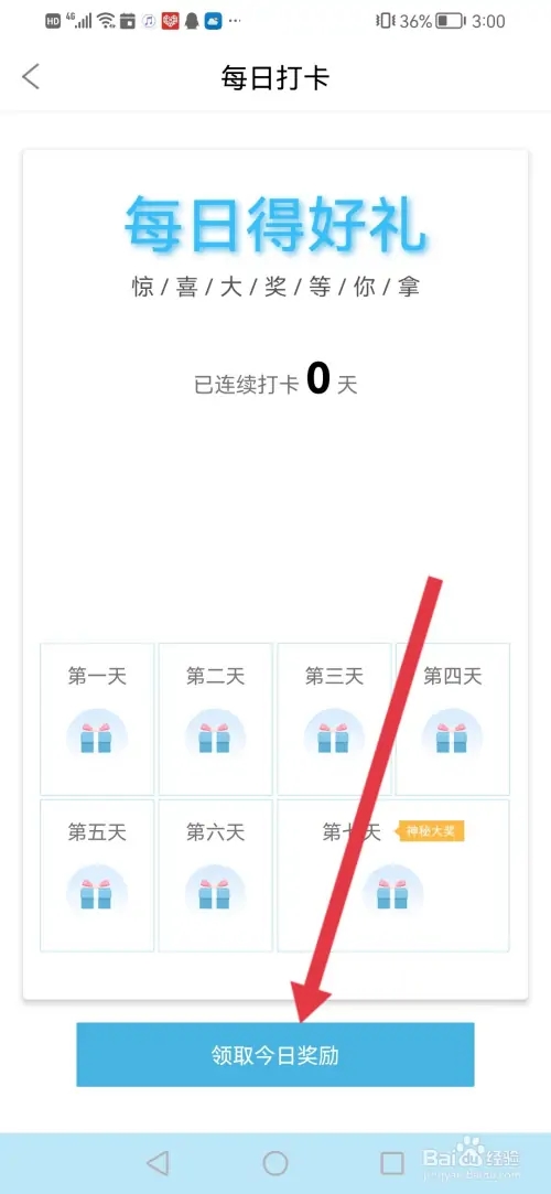 3.来到每日打卡页面,点击【领取今日奖励】。