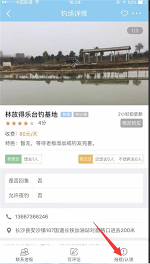 先找到并进入对应的钓场,点击右下角“报错/认领”完善所需内容提交即可。